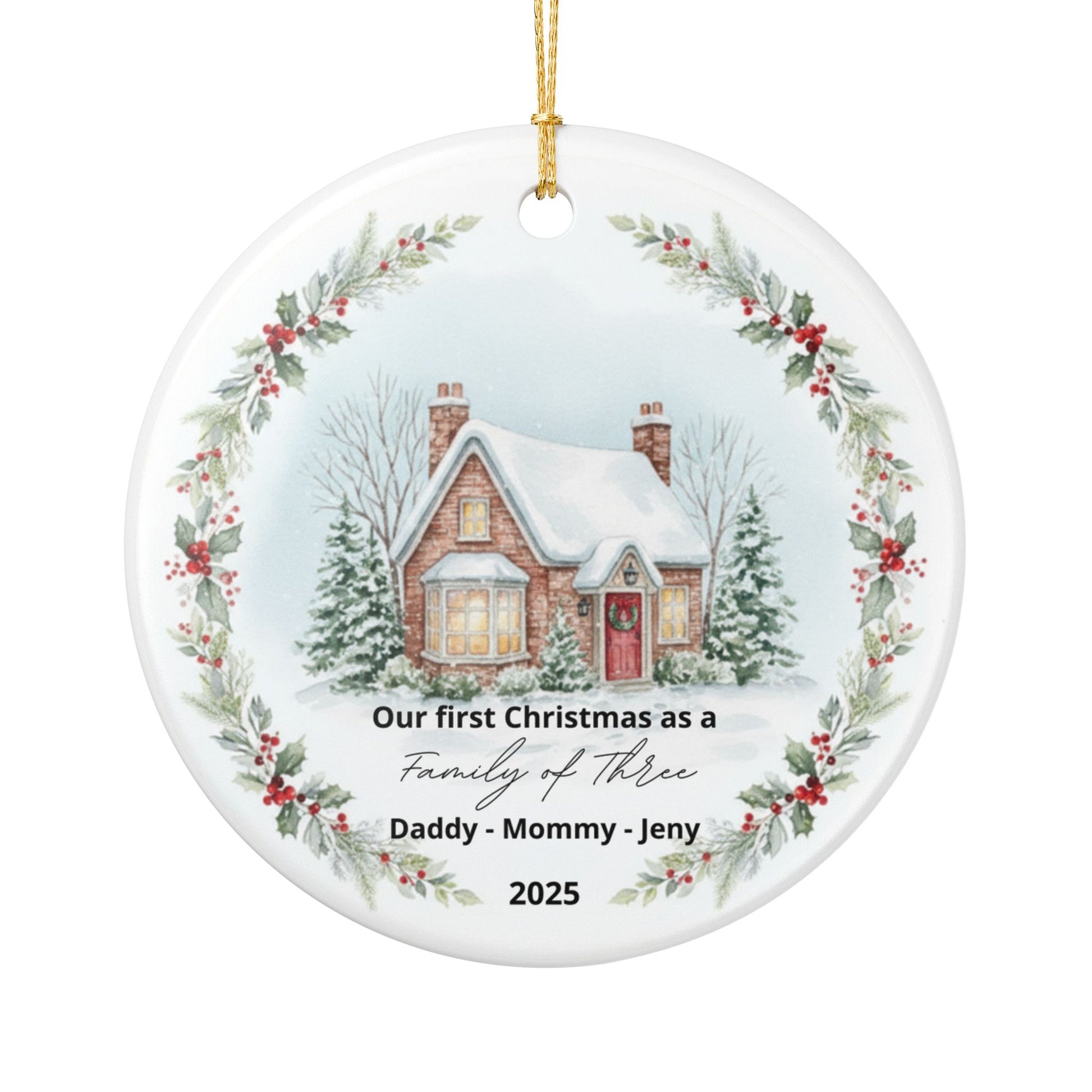 Personalized Baby First Christmas Ornament - Family of 3 Gift