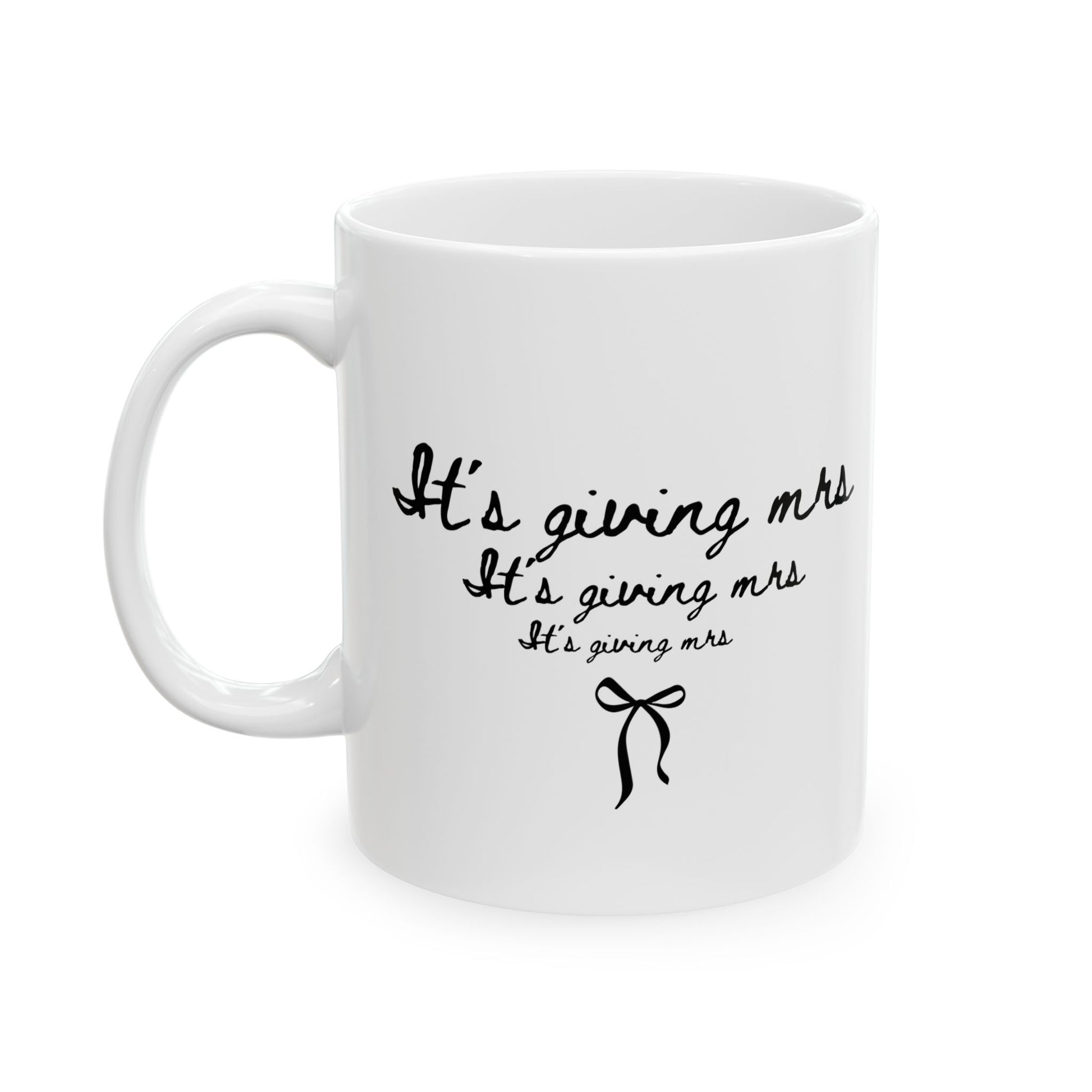 Its Giving Mrs. Mug, Future Mrs., Bride to Be Mug, Bachelorette Party Favor, Engagement Gift, Bridal shower Gift, Engaged Mug, Engaged Announcement Mug.