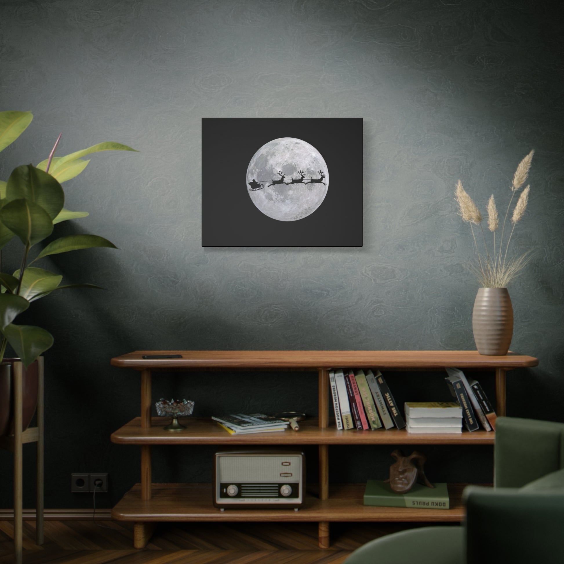 Santa Sleigh Silhouette Canvas, Full Moon Christmas Wall Art